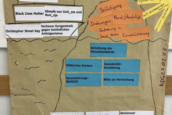 Wie wehre ich mich gegen Belästigungen? Wie kann ich handeln, wenn ich beobachte, dass andere Menschen diskriminiert werden? Was hat es mit Zivilcourage auf sich? Und was kann ich gegen menschenverachtende Einstellungen tun? Die Klasse 8b des Feudenheim-Gymnasiums hat im Zuge des sogenannten Courage-Projekts „Trotz alledem! – ein Projekttag zu emanzipatorischen Errungenschaften, gegen menschenverachtende Einstellungen und Strategien und für solidarisches Engagement“ Antworten und mögliche Lösungen auf diese Fragen und Herausforderungen gesucht. Das Projekt ist fester Bestandteil des Gemeinschaftskundeunterrichts der 8. Klassenstufe.In diesem Sinne stand ein ganzer Schultag der 8b im Zeichen von Courage. SchülerInnen wurden dabei ermutigt, sich gegen menschenverachtende Einstellungen zu positionieren und Strategien reaktionärer oder neonazistischer Bewegungen kennenzulernen. Es ging auch darum, sie für die Auswirkungen rechter Gewalt empfindlich zu machen. Das Methodenrepertoire knüpfte an die Lebenswelten der SchülerInnen an und gab ihnen die Möglichkeit, eigenes couragiertes Handeln zu erproben. Anschauliche Gruppenarbeiten, ein Quiz, zahlreiche Beispiele, der Austausch eigener beobachteter Erfahrungen mit Diskriminierung sowie die Auswertung eines Films machten den Projekttag kurzweilig.