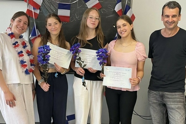 Wir gratulieren unseren Schülerinnen zur bestandenen DELF-Prüfung! Nachdem die drei Schülerinnen bereits Anfang des Jahres ihre schrifllichen und mündlichen Prüfungen abgelegt haben, sind nun endlich auch die bunten, offiziellen Zertifikate aus Frankreich eingetroffen und konnten am letzten Freitag in einem kleinen feierlichen Rahmen übergeben werden. DELF-Zertifikate sind international anerkannte Zertifikate für Französisch als Fremdsprache. Die Zertifikate werden vom französischen Ministerium für Bildung, Hochschulen und Forschung ausgestellt. Sie erhalten damit eine offizielle, weltweit anerkannte Zertifizierung der Französischkenntnisse. Besonders in der aktuellen politischen Situation ist es wichtig, sich mit der Sprache und Kultur unseres französischen Nachbarlands auseinanderzusetzen. Und unsere Absolventinnen haben das mit viel Motivation und Ehrgeiz getan und super Ergebnisse erbracht - wir sind sehr stolz auf euch! Félicitations und chapeau! 🇫🇷🐬🎩🥖Ähnliche Beiträge