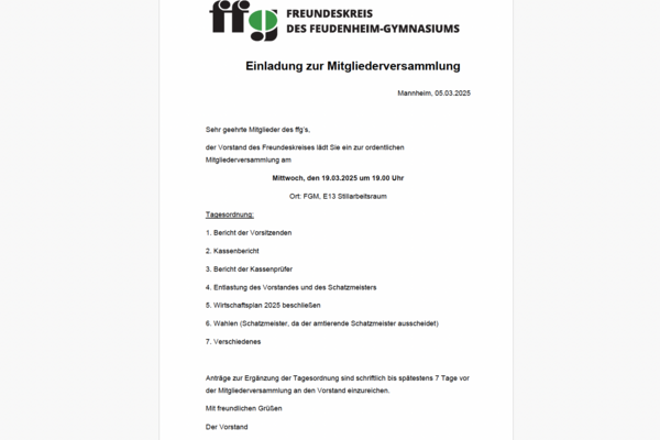 Einladung zur Mitgliederversammlung des FFG